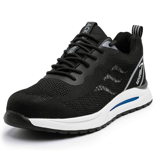 Black Hammer Men's Safety Trainers Steel Toe Cap & Midsole Protection Lightweight Work Shoes for Professional Trade Warehouse Non-Slip Water-Resistant Echo 2300 Black (11 UK)
