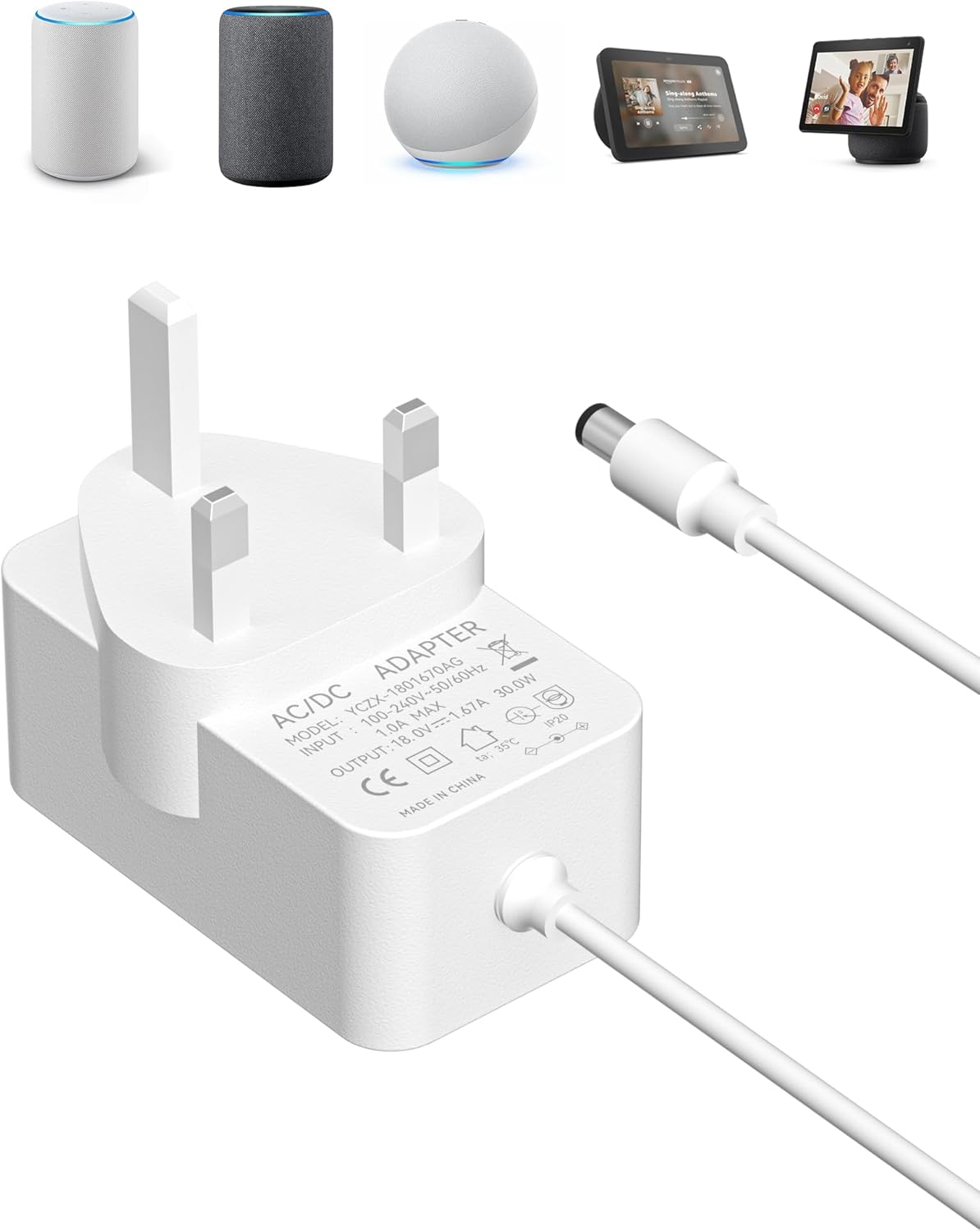 Yuio 18V 1.67A 30W Power Supply Charger for Echo Show 8, Echo Show 2nd Gen, Alexa Echo 3rd 4th Generation, Echo Plus 2nd Gen, Echo Show 10, Echo Show