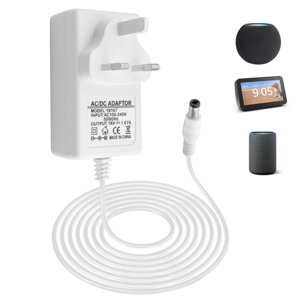 18V 1.67A Power Adapter 30W Power Adapter for Echo (3Rd 4Th Gen) Echo Show 8/10/