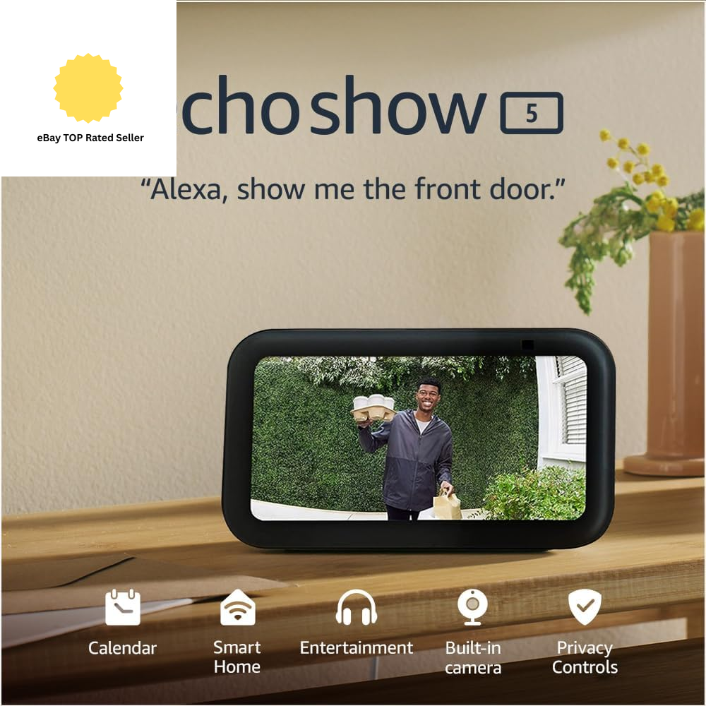 Echo Show 5 (Newest Gen) I Smart Display and Alarm Clock with Clearer Sound I Cl