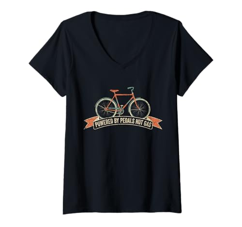 Women's Powered by Pedals Not Gas Eco Funny Bike Commuter Cycling V-Neck T-Shirt