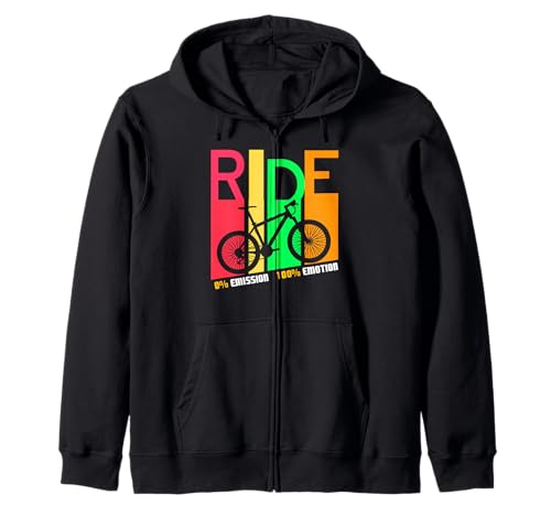 Ride Zero Emission Cycling Funny Eco Bike Slogan Zip Hoodie