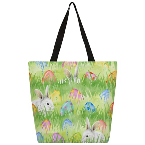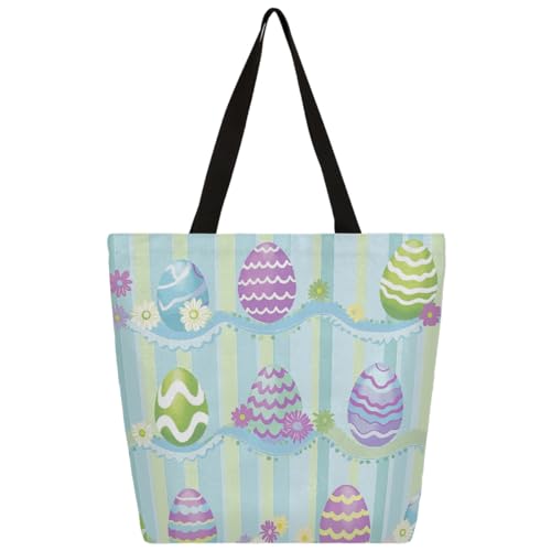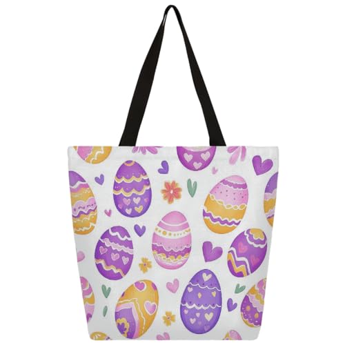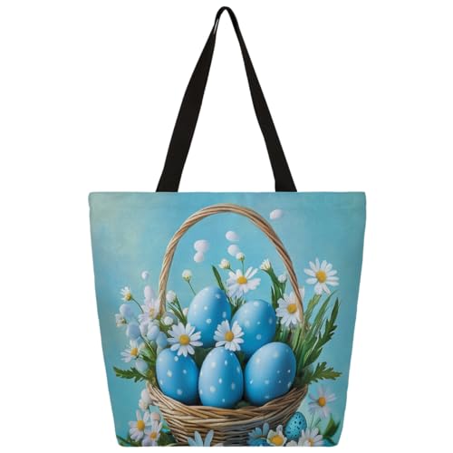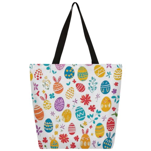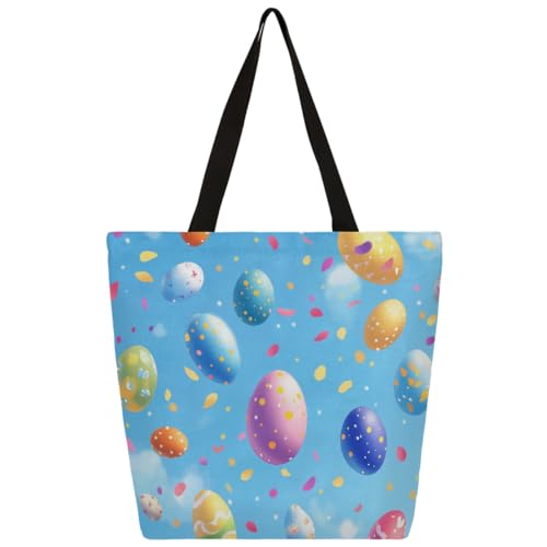 Fbghhty Easter Eggs Print Eco-Friendly Canvas Tote Bag Gift For Women Large Capacity Travel School Office