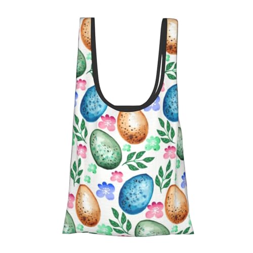 WSHFFILO Easter Eggs printed Fold eco-friendly shopping bag Portable tote storage bag