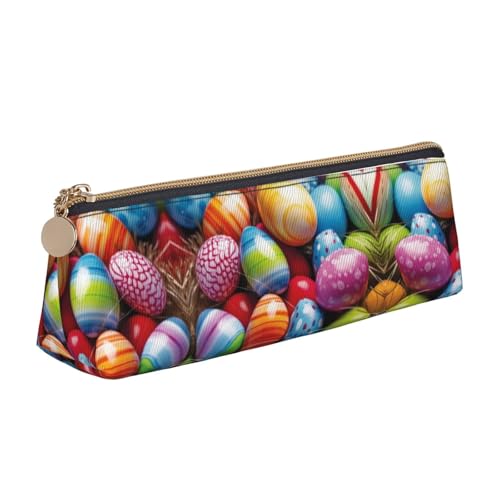BWPDPXFJ Eggs -Print Triangular Leather Pencil Case - Eco-Friendly Crossgrain Organizer W/Premium Zipper for School, Office & Travel