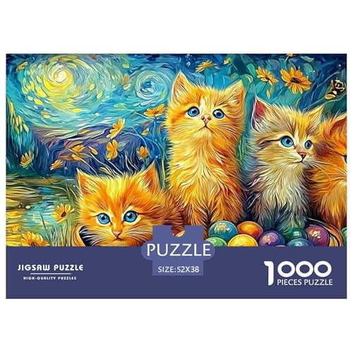 Easter Kittens 1,000 Pieces Two Cats Colorful Eggs Playful Artplastic Puzzle for Grandparents Sustainable Fit Perfectly Eco-friendly Non-glare Sturdy 52x38cm/1000pcs