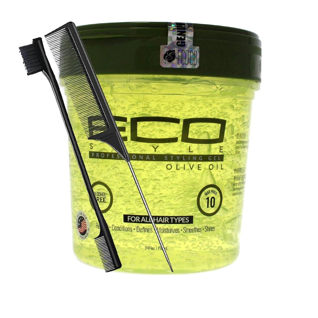Eco Style Olive Oil Styling Gel 24oz with Tail Comb & Edge Brush.