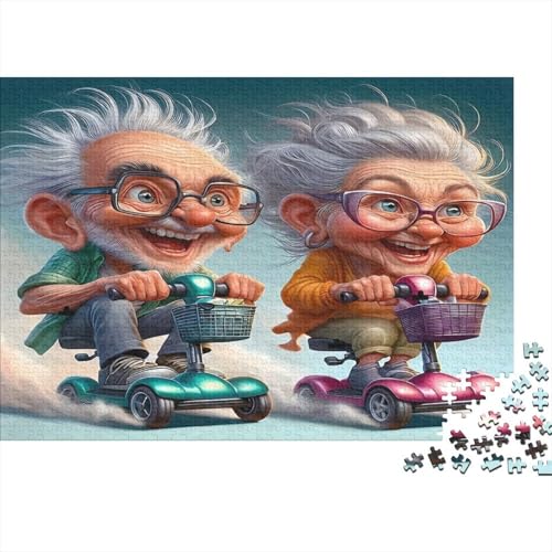 Elderly Women Scooter Ride Eco-Friendly Premium Paper Unique High Difficulty Puzzle Jigsaw Puzzle Grandma Scooter for Adults & Families 70x50cm/1000pcs