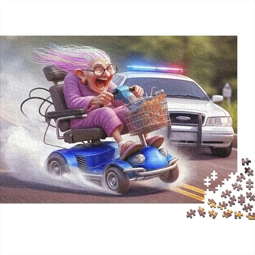 Elderly Woman Driving Eco-Friendly Premium Paper Unique High Difficulty Puzzle Jigsaw Puzzle Elderly Scooter for Adults & Families 52x38cm/1000pcs