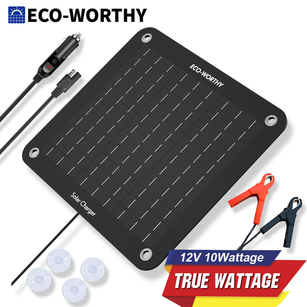 ECO-WORTHY 10W Solar Car Battery Charger Maintainer 12V Waterproof Solar Panel Portable Solar Trickle Charger for Car Boat Lawn Mower RV Trailer Trac