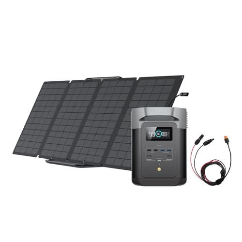 EcoFlow DELTA 2 Portable Power Station & 110W Solar Panel with XT60i Cable, 1-3kWh Expandable Capacity, LFP Battery, Fast Charging, Solar Generator for Backup Power, Camping & RVs