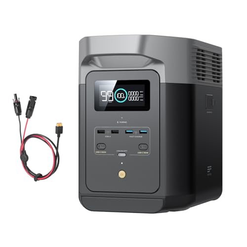 EF ECOFLOW DELTA 2 1024 Wh Portable Power Station with XT60i Cable, Solar Generator with LiFeP04, Expandable Capacity up to 3 kWh, Quick Charge from 0–80% in 50 min, Generator for Camping/Home