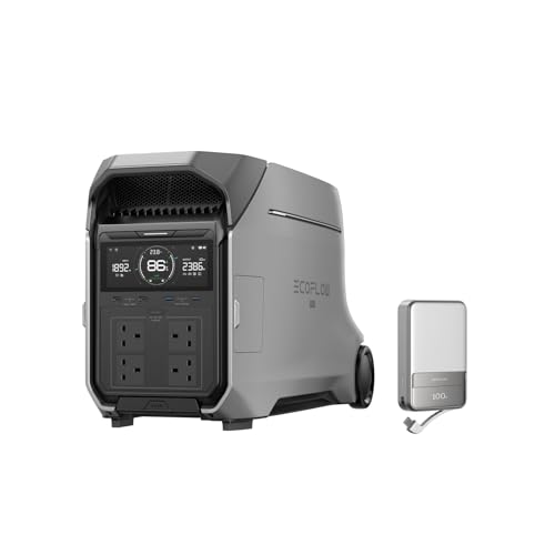 ECOFLOW DELTA Pro 3 Portable Power Station with 10000mAh Power Bank, 4096Wh LFP Battery, Expandable to 12kWh, 230V 4000W AC Output, Solar Generator for Home Use, Camping Accessories, Emergencies, RVs