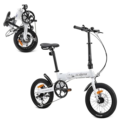 ECOSMO 16" Lightweight Alloy Folding City Bike Bicycle,6 Speeds, Dual Disc brakes, Folding Pedals - 16AF02W