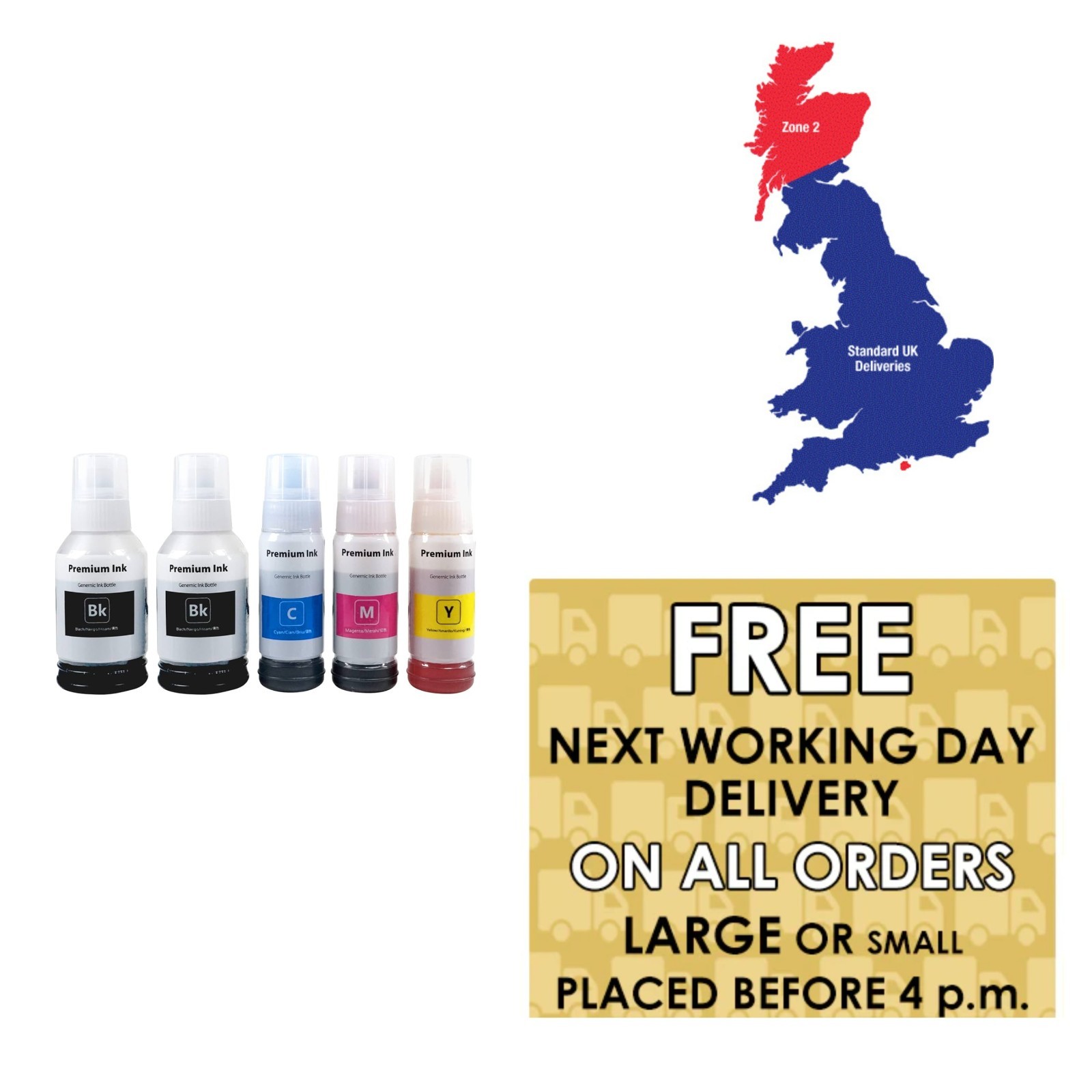 Non-OEM Ink fits Epson ET-2850 Ecotank Inkjet Printer refill Bottles x 5