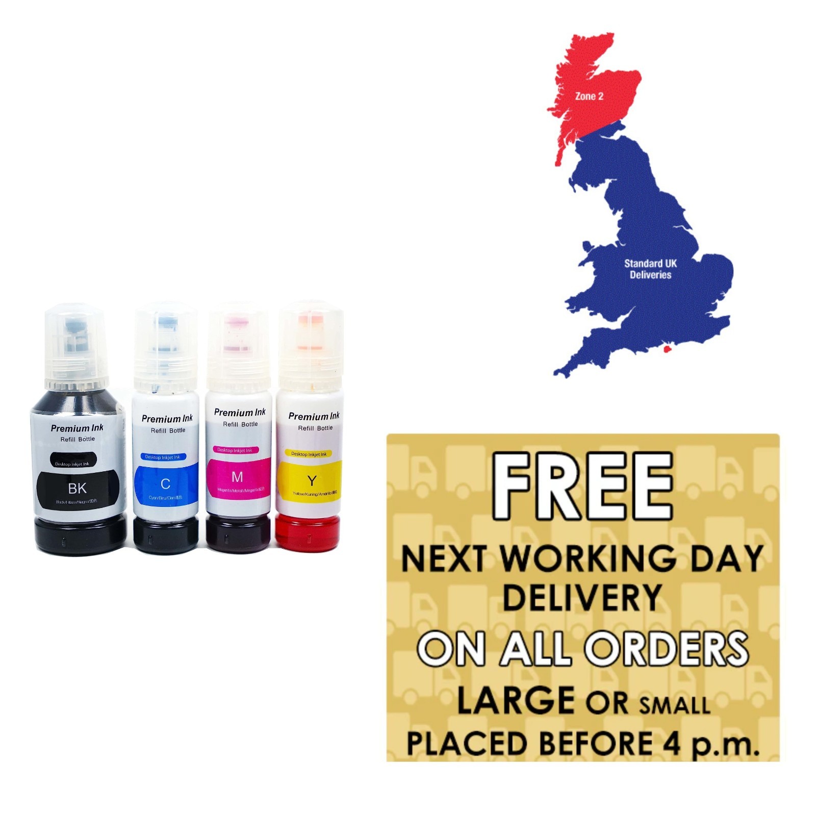 Non-OEM Ink for Epson ET-2850 Ecotank Inkjet Printer Refill Bottles x 4