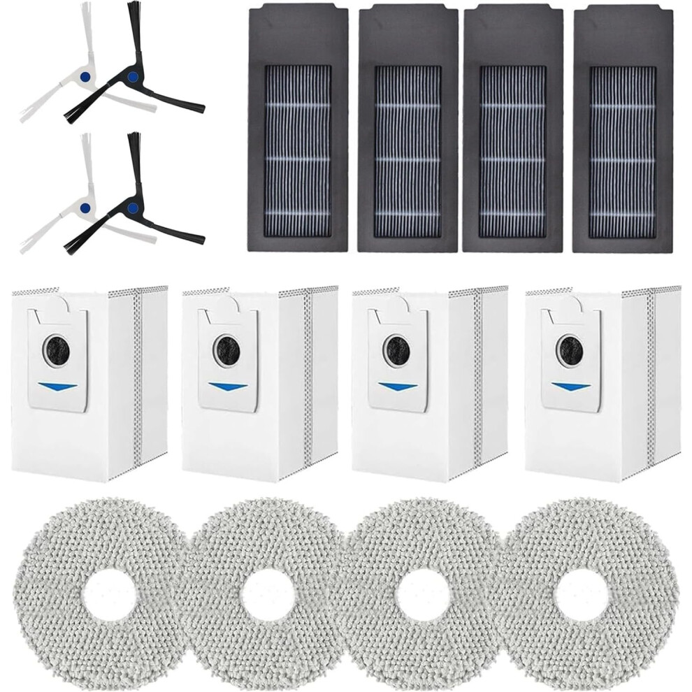 16PCS Replacement Accessories Set for Ecovacs Debot X2 Omni / X2 / X2 Pro / DEX86 Robot Vacuums, 4 Side Brushes, 4 HEPA Filters, 4 Mop Cloth, 4 Dust