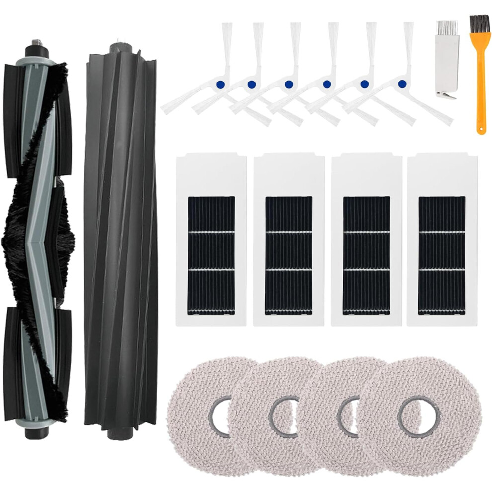 17PCS Replacement Accessories Set for Ecovacs Deebot X2 Omni / X2 / X2 Pro / DEX86 Robot Vacuums, 1 Main Brush, 4 Side Brushes, 4 Filters, 4 Mop