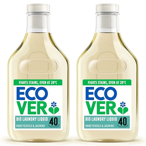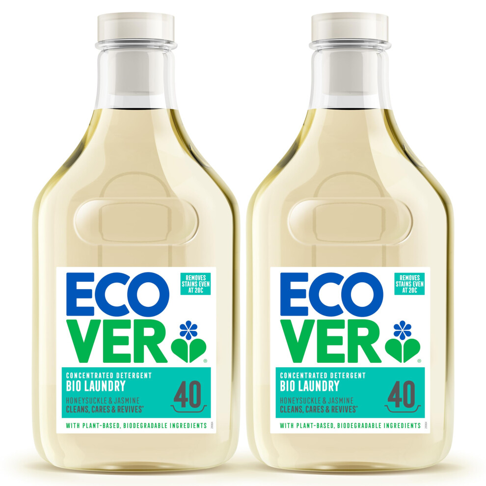 Ecover Concentrated Bio, Laundry Detergent, Laundry Washing Liquid, Honeysuckle & Jasmine, 2x Pack of 40 Washes, 2x 1.43L