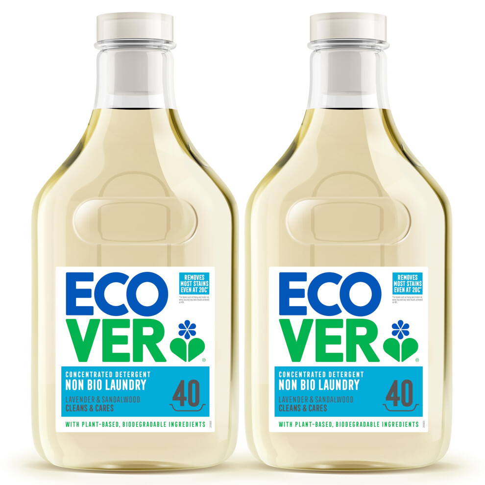 Ecover Concentrated Non-Bio, Laundry Detergent, Laundry Washing Liquid, Lavender and Sandalwood, 2x Pack of 40 Washes, 2x 1.43L
