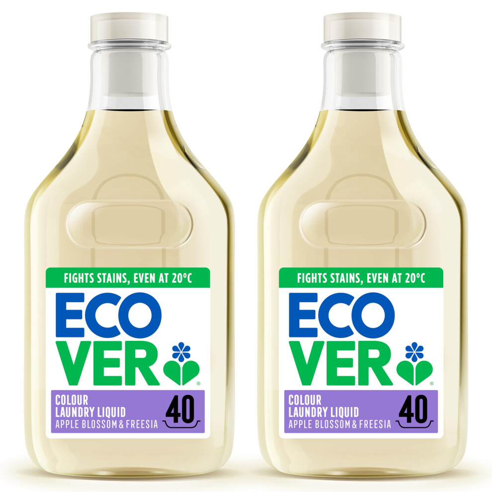 Ecover Concentrated Bio, Laundry Detergent, Colour Laundry Washing Liquid, Apple Blossom & Freesia, 2x Pack of 40 Washes, 2x 1.43L