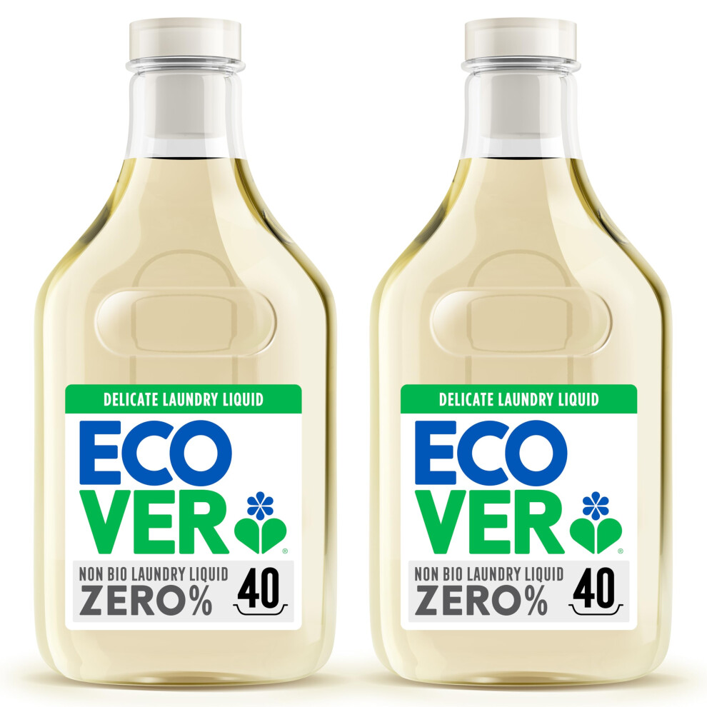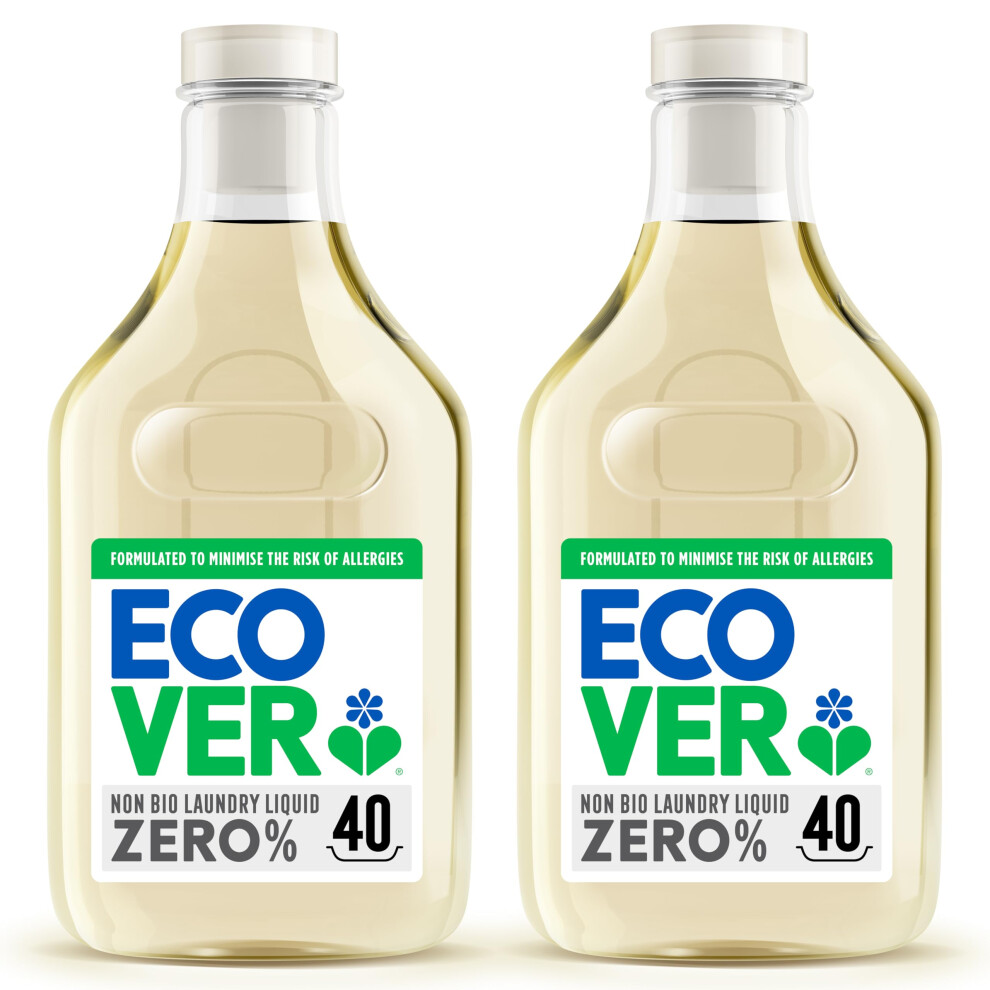 Ecover Zero Non-Bio Laundry Detergent for Sensitive Skin, Baby Laundry Washing Liquid, 2x Pack of 40 Washes, 2 x 1.43L