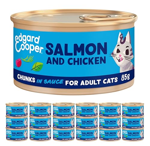 Edgard Cooper Grain Free Wet Cat Food in Gravy for Adult Cats (Salmon&Chicken 16 x 85g), Natural Cat Food in Chunks for Sterilized or Active Cats, No Added Sugar