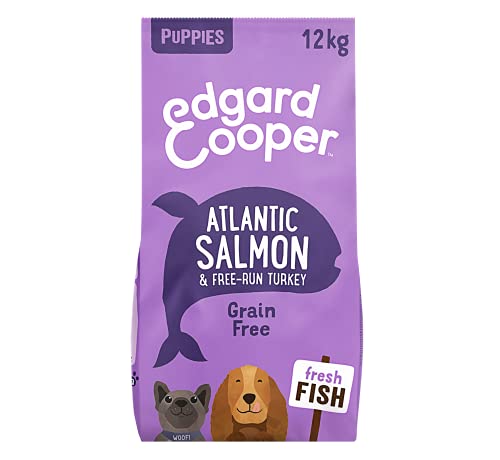 Edgard Cooper Puppy Grain Free Dog Food Dry, Salmon & Turkey 12kg, Natural Kibble for Puppies, Fresh Meat, High in Protein, Hypoallergenic, No Added Sugar