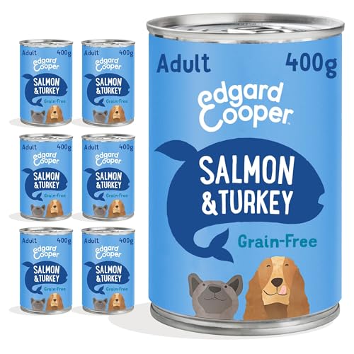 Edgard Cooper Grain-Free Adults Wet Dog Food in Gravy for Puppies, SalmonTurkey 6 x 400g, Natural Dogs Food in Tins with Fresh Meat, High Protein, Hypoallergenic, No Added Sugar