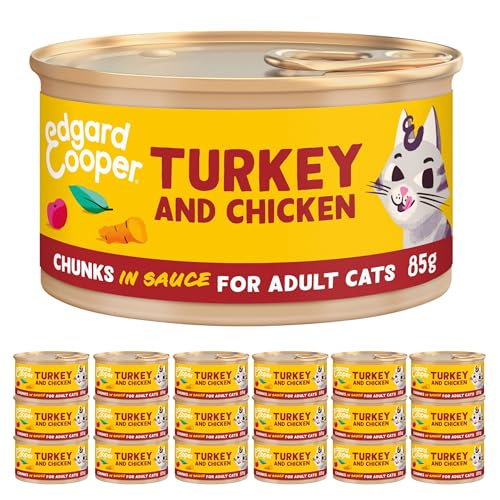 Edgard Cooper Grain Free Wet Cat Food in Gravy for Adult Cats (Turkey&Chicken 16 x 85g), Natural Cat Food in Chunks for Sterilized or Active Cats, No Added Sugar
