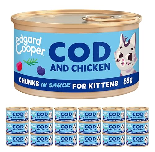 Edgard Cooper Kitten Grain Free Wet Cat Food in Gravy (Cod&Chicken 18 x 85g), Natural Cat Food in Chunks for Sterilized or Active Cats, No Added Sugar