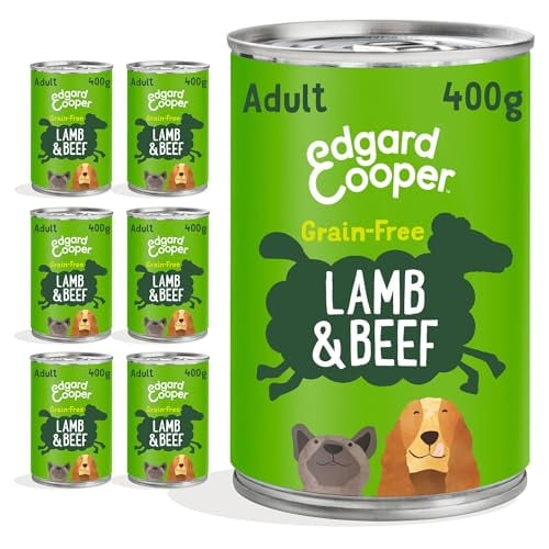 Edgard Cooper Grain-Free Wet Dog Food in Gravy for Adult Dogs, LambBeef 6 x 400g, Natural Dogs Food in Tins with Fresh Meat, High Protein, Hypoallergenic, No Added Sugar