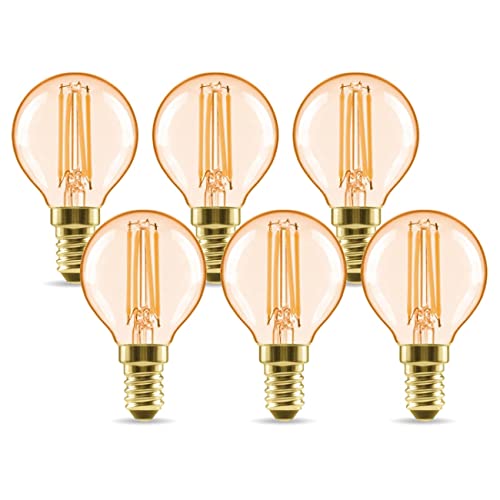 LVWIT 4W Vintage E14 LED Golfball Filament Bulb Screw,E14 Edison Mini Golfball Bulb 35W Equivalent,410LM,2400K Warm White E14 Led GLS Bulbs,220-240V,45 * 77MM,Non-Dimmable (6 pcs)