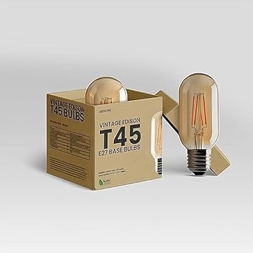 LEDSone T45 Tubular E27 Screw Bulb Led Edison Light Bulb Non-Dimmable Retro E27 Bulb 220V 4W 450 Lumen Warm White 2700K T45 Led Filament Light Bulb