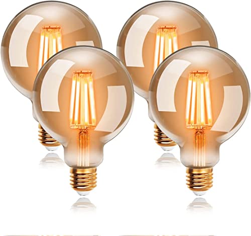 EXTRASTAR E27 Vintage Edison Light Bulb, 6W G95 Retro Antique Filament Bulbs 48W Equivalent, 540LM 2200K Amber Warm Screw Bulbs- 4 Pack