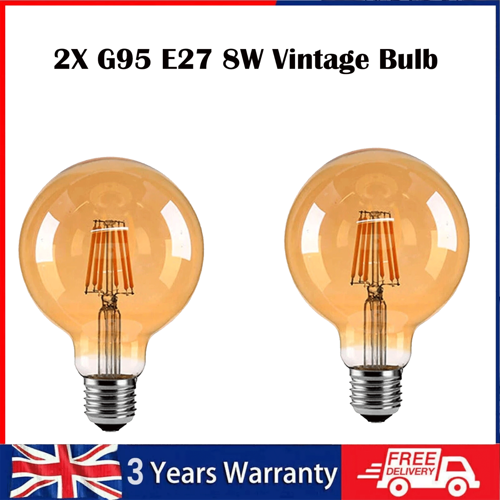 G95 E27 8W Globe Vintage Filament Scerw Edison Led light Filament Bulb 2 Set