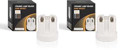 LEDSone Ceramic Porcelain E27 Lamp Holder 46mm(H) × 40mm(W) × 33mm(L) Edison Screw Light Bulb Socket, Heat Resistant LampHolder for DIY Pendant Ceiling Lighting, 240V UK (Ceramic Lamp) (Pack of 2)
