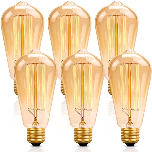 Woowtt Edison Light Bulb 6 Pack Classic Antique Bulb Style - Dimmable - Amber Warm - ST64 40W