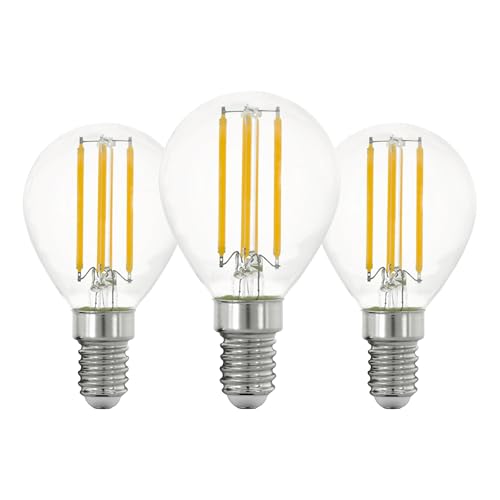 Eglo Set of 3 E14 Filament LED Lamps, Edison Light Bulb Transparent, 7 watt (Equivalent to 60 watt), 806 Lumen, Warm White Lightbulb, 2700 K, P45 Bulb, Ø 4.5 cm