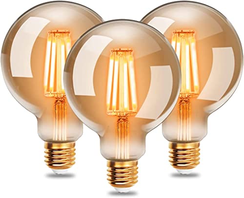 EXTRASTAR Vintage Edison Light Bulb, 6W G95 Old Fashioned Style Globe LED Bulb (48W Equivalent), E27 Edison Screw Base Retro Antique Spiral Filament Bulbs, 540LM, 2200K Amber Warm - 3 Pack