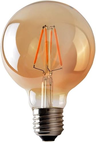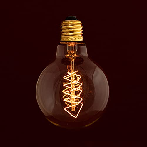 William & Watson Globe Edison Large Light Bulb Industrial 95mm Round Shape with Spiral Filament. 40W E27 ES Screw Fitting with Amber Glass 2200K (Large 95mm Width) (Pack of 1)