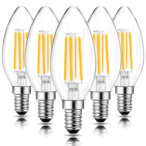 ROMANJOY E14 LED Candle Bulbs, 4W Equivalent 40W, 2700K Warm White, C35 Dimmable Edison Light Bulb, Clear Glass LED Filament Chandelier Lamp for Ceiling Fans, 5 Pack