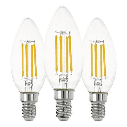 Eglo Set of 3 E14 Filament LED Lamps, Edison Light Bulb Transparent, 7 watts (Equivalent to 60 watts), 806 lumens, Warm White Lightbulb, 2700 K, C35 Bulb, Ø 3.5 cm