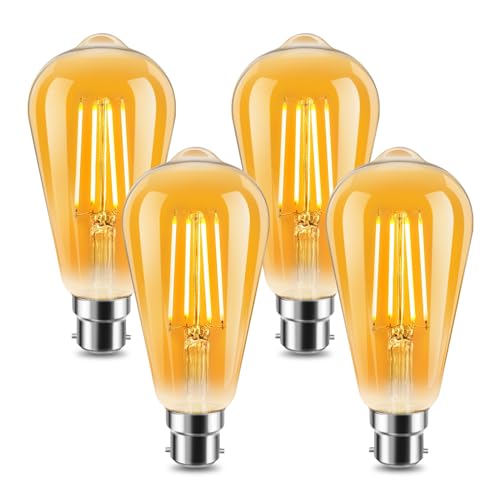 ILEEDear Vintage Edison Light Bulb B22 Edison Screw Bulb ST64, 4W Equivalent to 42W, Retro Amber Glass Screw Lamp, Warm White 2200K, Energy Saving Light Bulbs, Non-dimmable, Pack of 4