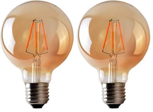 Vintage Edison LED Light Bulbs, Dimmable Screw Edison Bulbs Incandescent Light Bulb Globe Bulbs Retro Filament Lamp 2300K Warm Light 4W (Equivalent to 40W) G80 E27 220V-2 Pack [Energy Class E]
