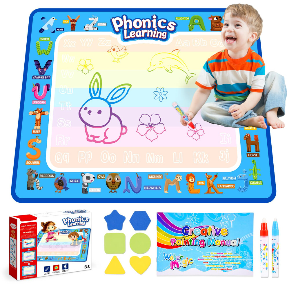 Grriopi Toddler Toys for 2 3 4 5 Year Old Boys Girls, Water Doodle Mat 1-6 Year Old Girls Easter Gift, Educational Toys for 2-5 Year Olds Water Drawing Mat Birthday Gift for Kids(80 * 60CM)