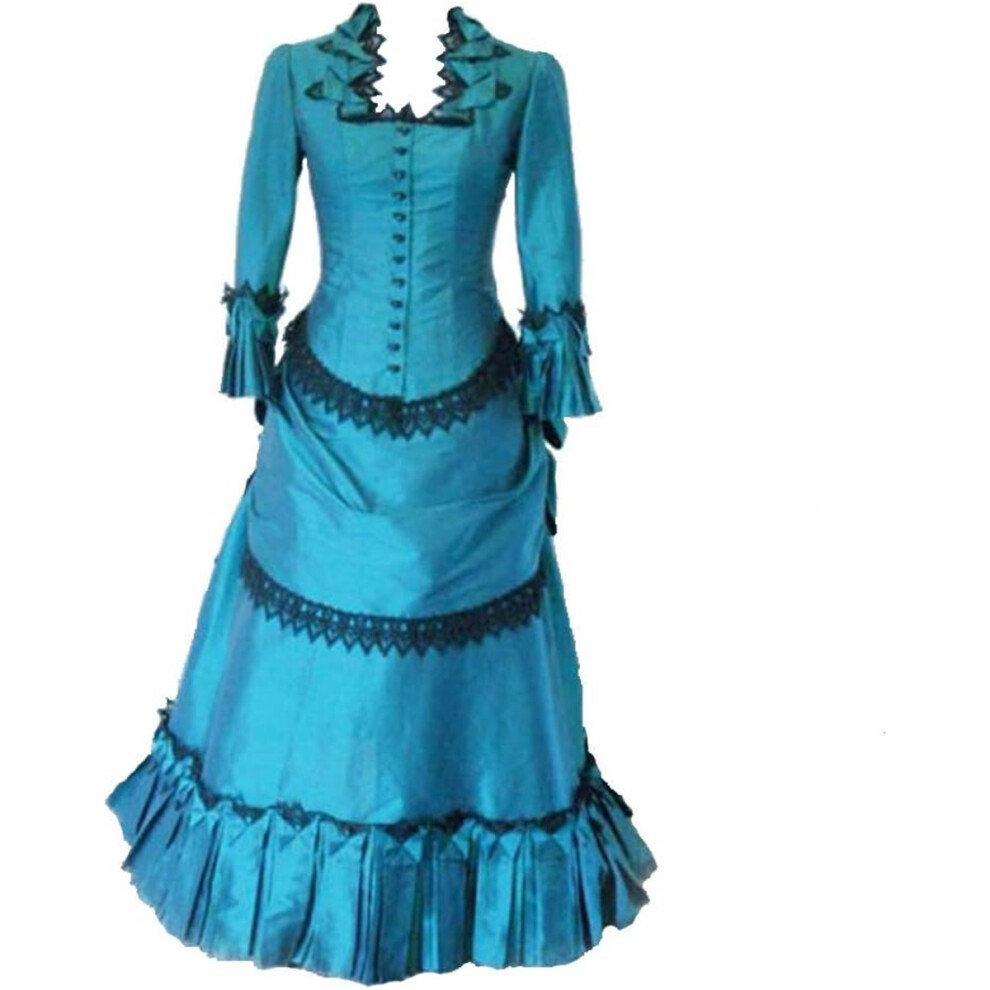 (XL, Blue) Steampunk Victorian Gothic Cosplay Costume Victorian Bustle Dress Gown Costume Edwardian Evening Dress