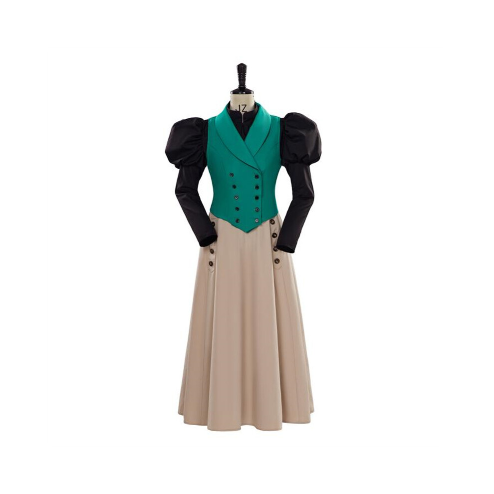 (M, Green) Steampunk Victorian Gothic Cosplay Costume Victorian Bustle Dress Gown Costume Edwardian Evening Dress
