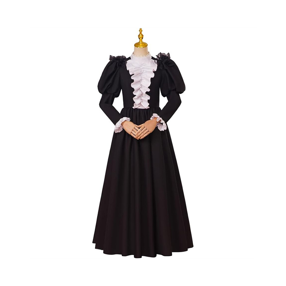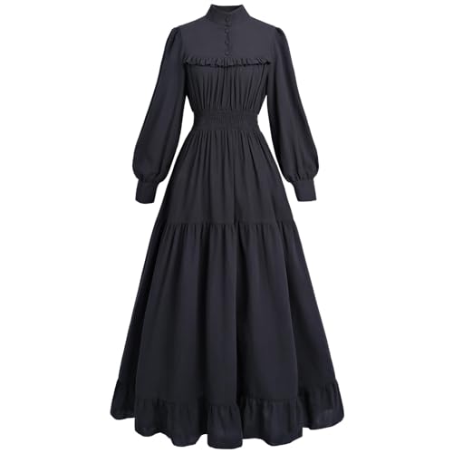 CR ROLECOS Black Victorian Dress for Women Vintage Medieval Dresses Long Sleeve Edwardian Dress Gothic Renaissance Costume S