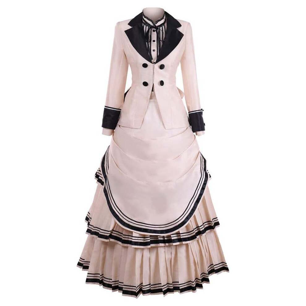 (Medium, Black and White) Steampunk Victorian Prom Gown Cosplay Costume Victorian Bustle Dress Gown Costume Edwardian Dress